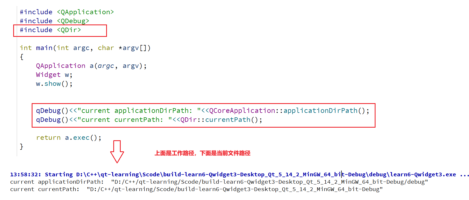 如果我们不知道这个路径在哪,可以输入下面代码来 查看运行程序的 工作目录 与 程序所在的目录