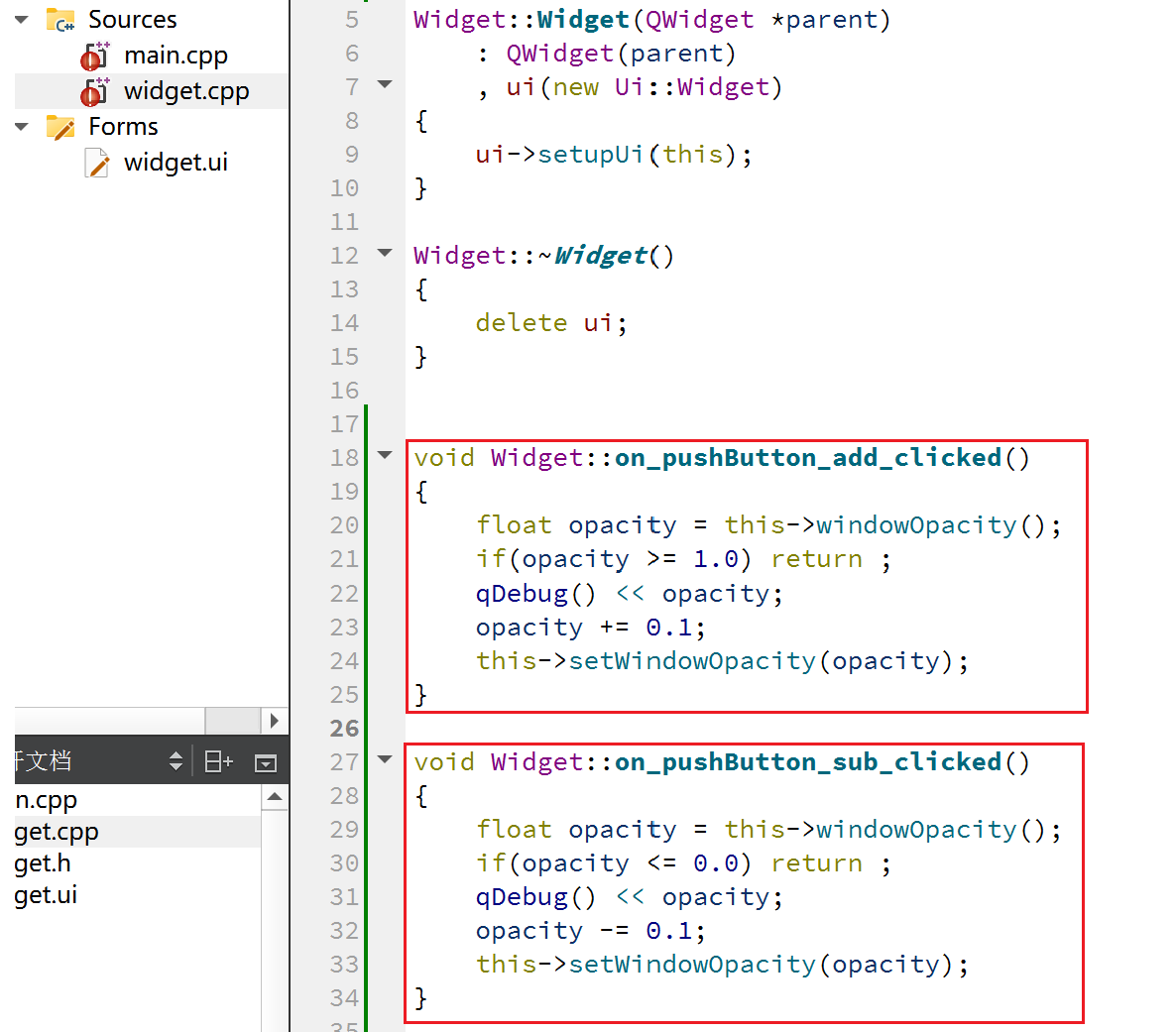 pushButton_sub 会减少不透明度,也就是窗口越来越透明pushButton_add 会增加不透明度,窗口会逐渐恢复