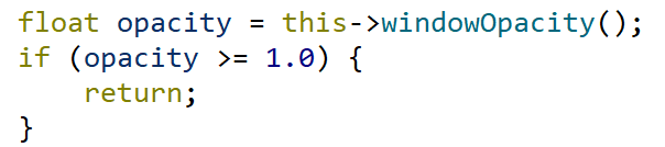 同时控制台中也可以看到 opacity 数值的变化,发现其窗口得到不透明度变化并非是精确的