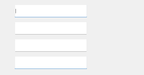 (2)修改四个输入框的 focusPolicy 属性分别为 Qt::StrongFocus (默认取值,一般不用额外修改)、Qt::NoFucus、Qt::TabFucus、Qt::ClickFucus