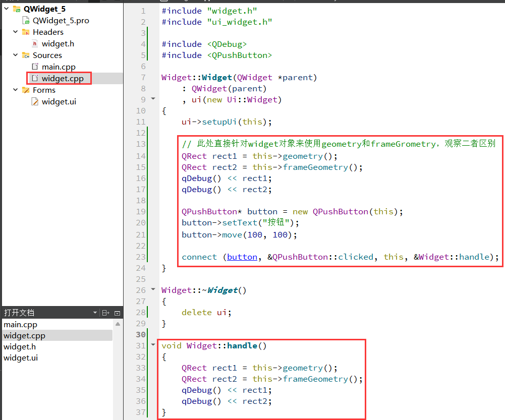 slot 函数中,由于用户点击的时候,对象树已经构造好了,此时 Widget 已经具备了 Window frame,因此在位置和尺寸上均出现了差异。