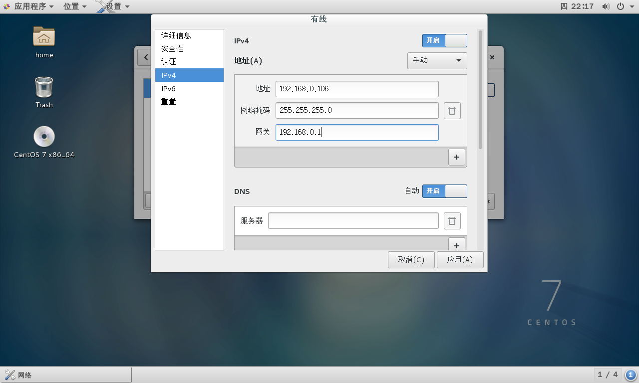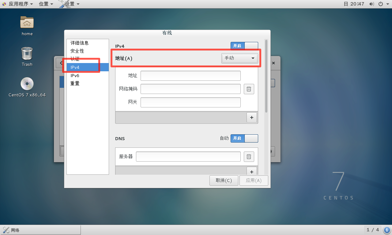 然后选择 IPv4,然后选择 手动: