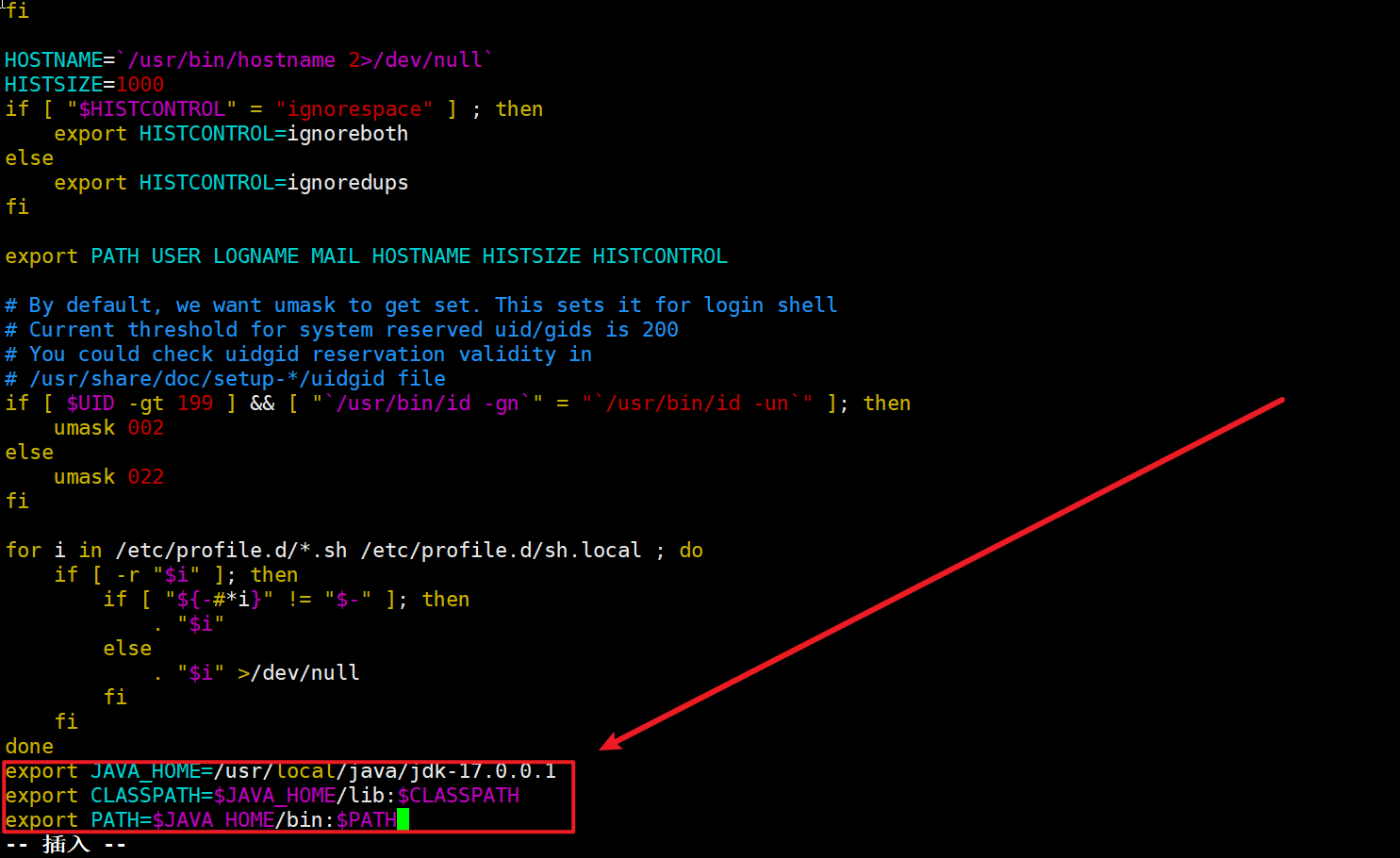 cd jdk-17.0.0.1/配置环境变量:首先还是打开这个配置文件