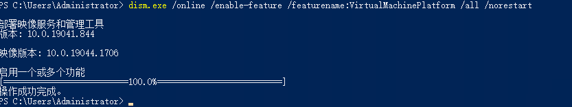 dism.exe /online /enable-feature /featurename:VirtualMachinePlatform /all /norestart