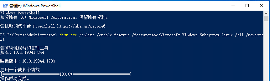dism.exe /online /enable-feature /featurename:Microsoft-Windows-Subsystem-Linux /all /norestart