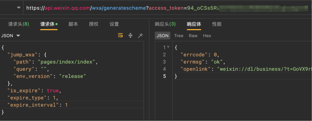 URL Scheme,该接口用于获取小程序 scheme 码,适用于短信、邮件、外部网页、微信内等拉起小程序的业务场景。目前仅针对国内非个人主体的小程序开放。