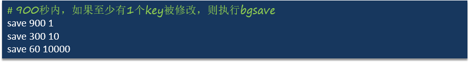 Redis内部有触发RDB的机制,可以在redis.conf文件中找到,格式如下: