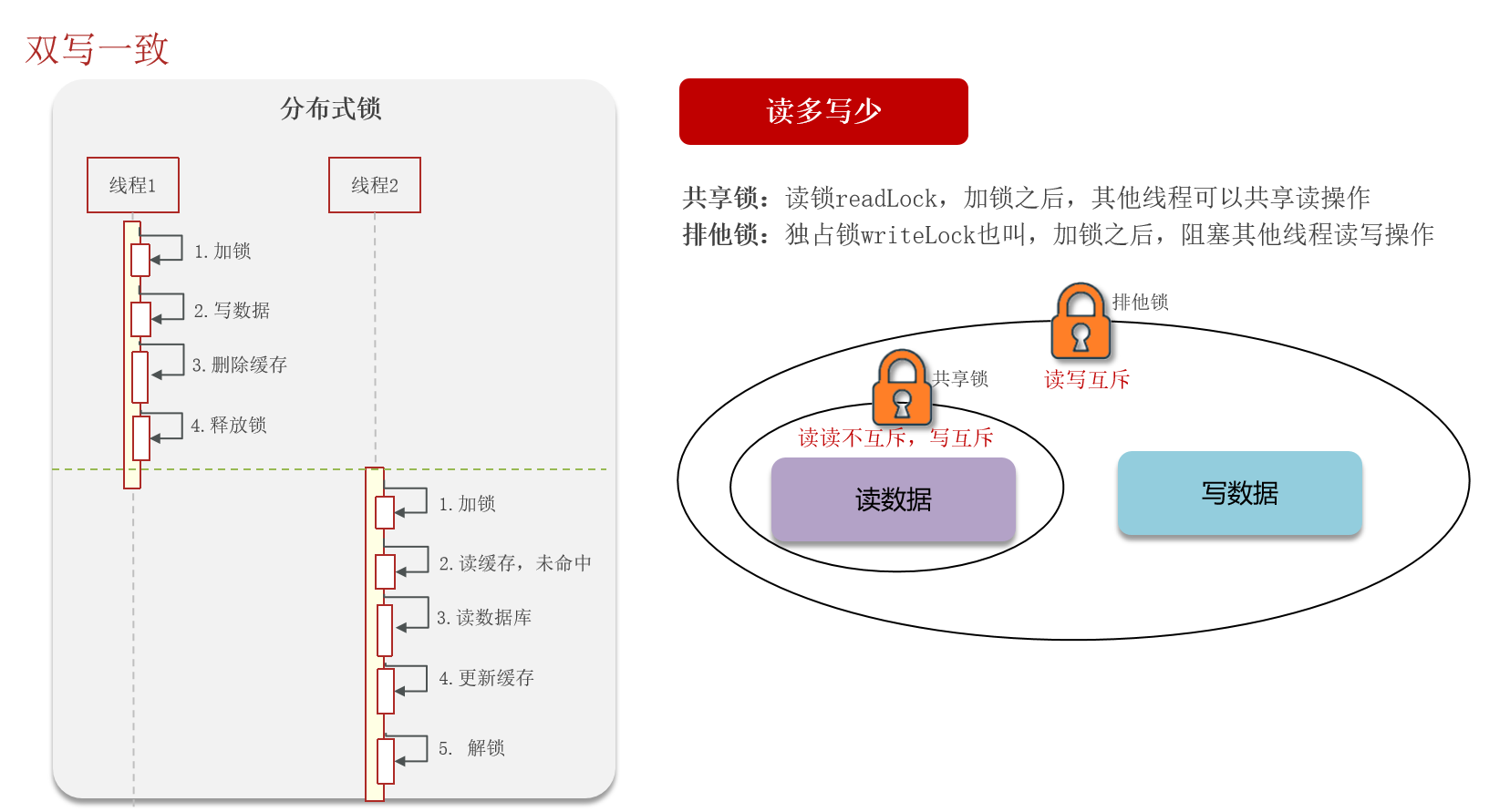 双写一致性:当修改了数据库的数据也要同时更新缓存的数据,缓存和数据库的数据要保持一致