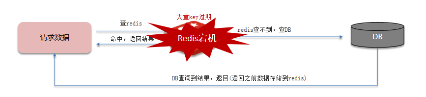 缓存雪崩是指在同一时段大量的缓存key同时失效或者Redis服务宕机,导致大量请求到达数据库,带来巨大压力。