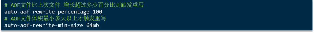 Redis也会在触发阈值时自动去重写AOF文件。阈值也可以在redis.conf中配置: