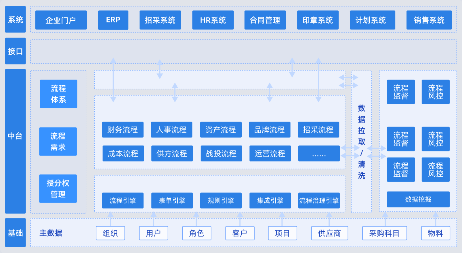 解释:对企业业务流程进行建模、自动化与优化,提升流程效率与协同性。