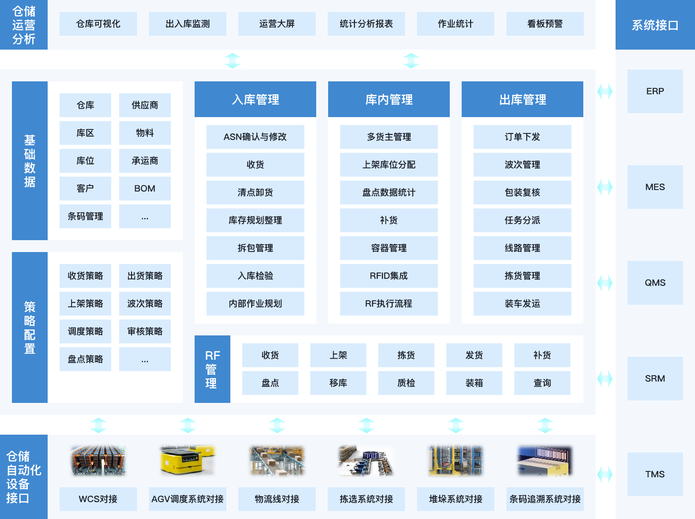 WMS 负责仓库内物流活动,与 ERP 集成确保库存数据准确及时更新,与 SCM 集成支持整个供应链效率提升。