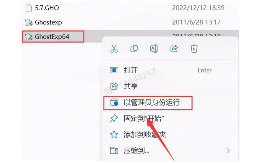 在【GhostExp64】文件上点击鼠标右键,选择"以管理员身份运行"。