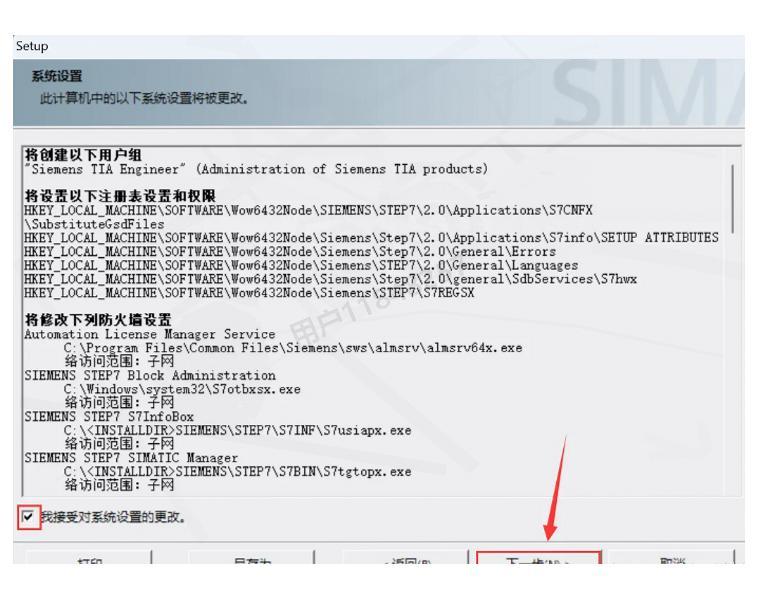 勾选"确认接受系统设置变更"选项,然后点击"继续"按钮。