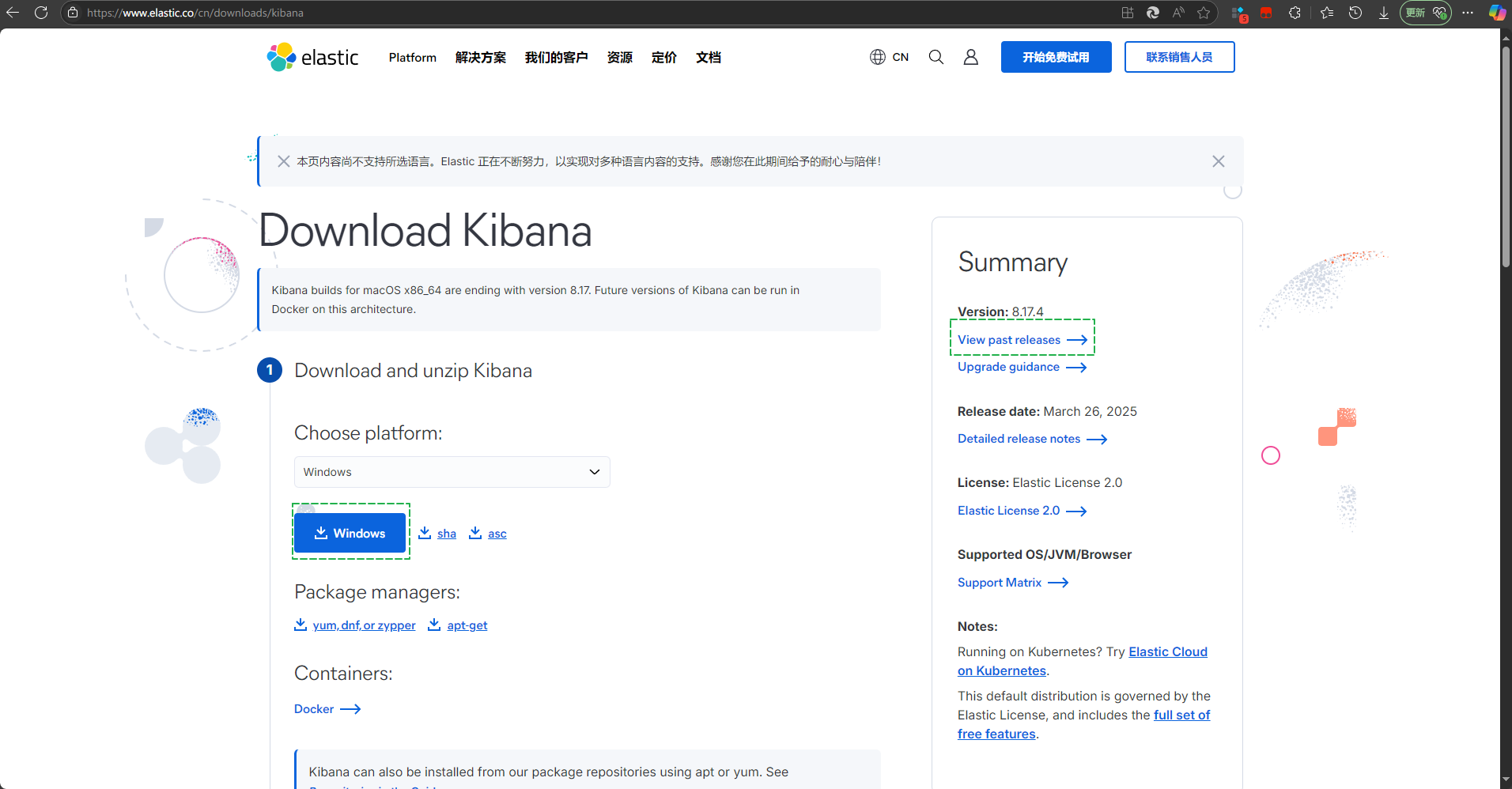 下载地址:Download Kibana Free | Get Started Now | Elastic
