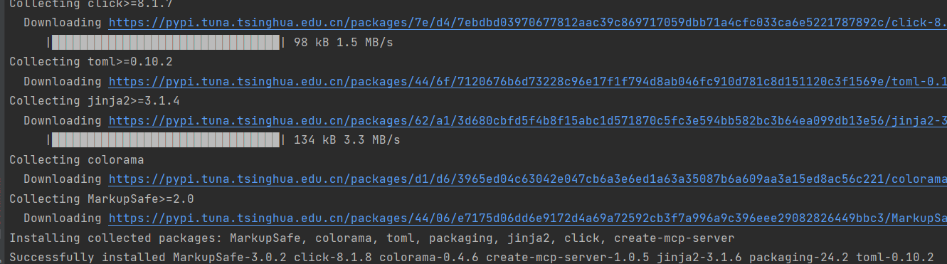 # Using uvx (recommended)uvx create-mcp-server# Or using pippip install create-mcp-serverpip install mcp-server-gitcreate-mcp-server需要注意的是Python版本需要3.10以上。