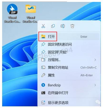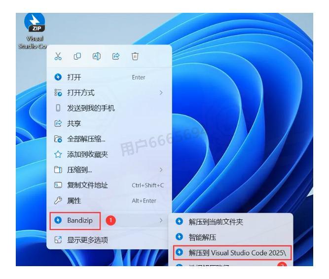 1、下载完成后,右键点击安装包选择【解压到Visual Studio Code 2025\】,这样方便我们找到主程序。