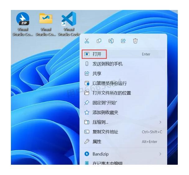11、回到桌面,找到刚创建的VS Code图标,右键点【打开】运行软件。