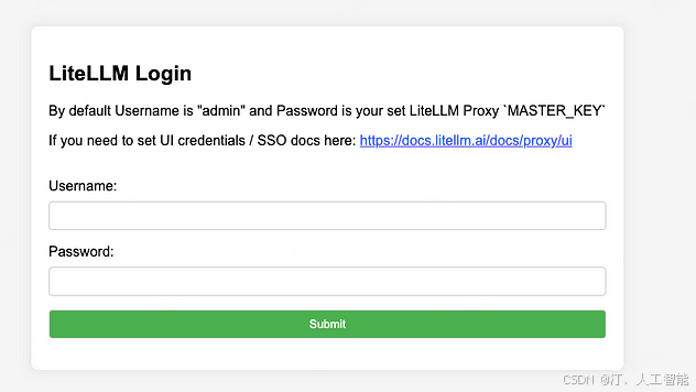 pip install litellm如果希望将 LiteLLM 服务部署成类似 OneAPI的形式,并带有 UI 管理界面,则用以下方式进行安装: