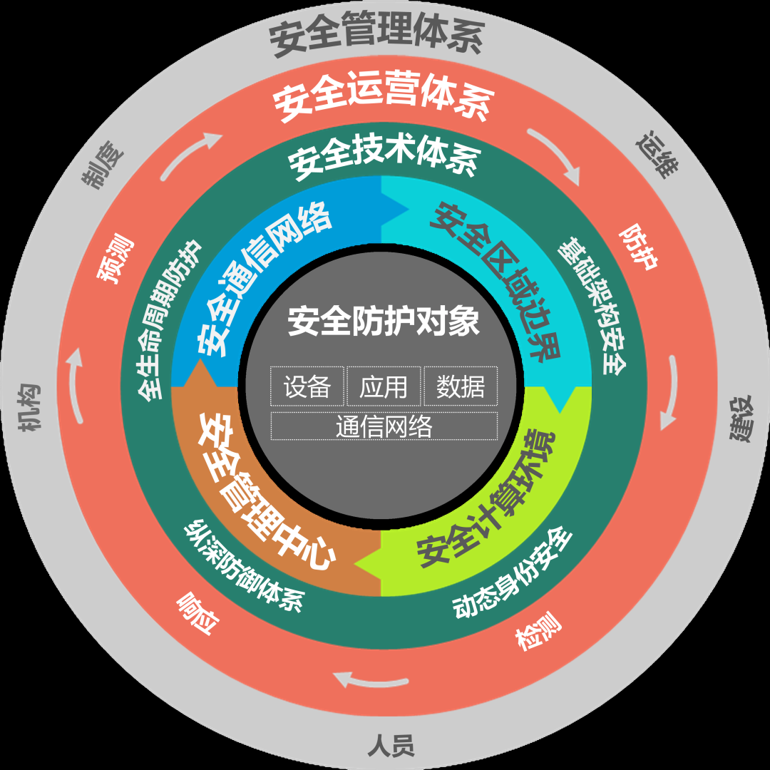 三重防护结构:在安全管理中心支持下,强化安全通信网络、安全区域边界、安全计算环境。