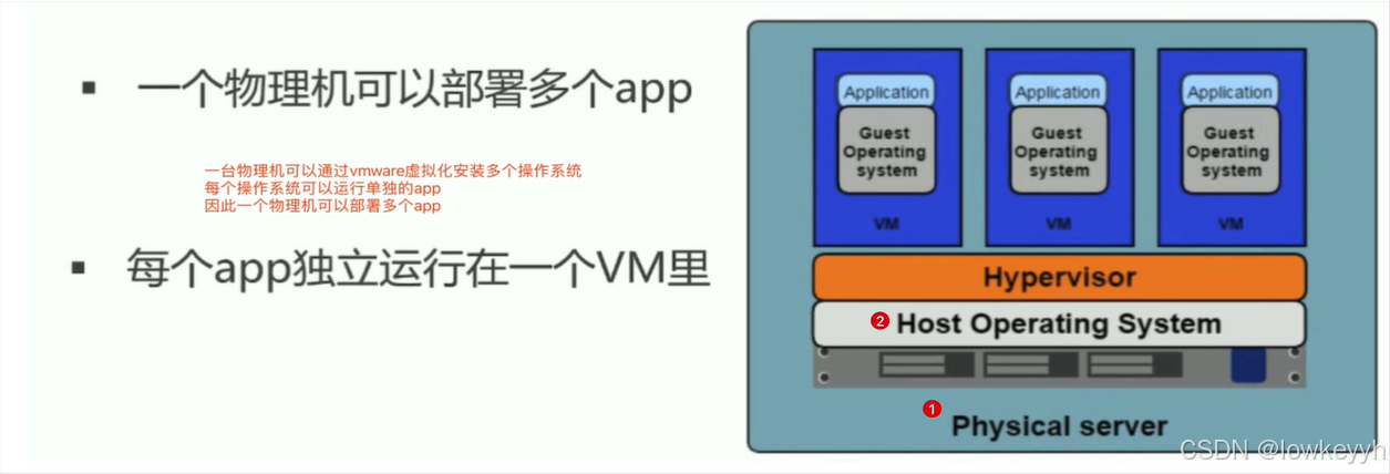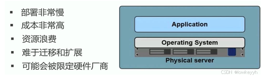 相较于从前,部署成本降低,可充分利用服务器资源,利用虚拟机的模板功能(vmware模板克隆)便利了迁移与拓展。但是虚拟化也具有一定的局限性,每个虚拟机都是一个完整的操作系统,需要分配系统资源,虚拟机多到一定程度时,操作系统本身的资源也就消耗殆尽,必须扩容。