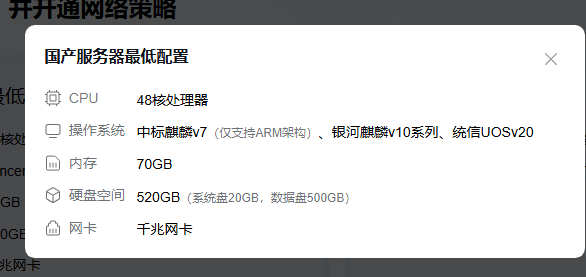 部署的第一步是准备一台满足最低要求的服务器。国产信创服务器的要求会比普通X86架构服务器更高一些,可以点击“国产服务器”进行查看。