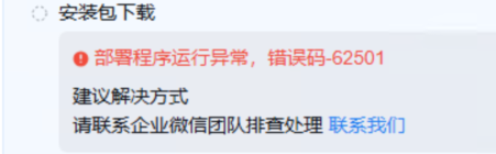 需要开通对应端口,部署时报错-62501 需要开通对应使用的端口,端口则是部署前填写在官网上的端口