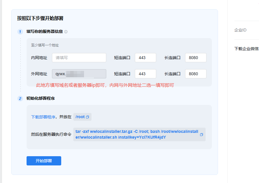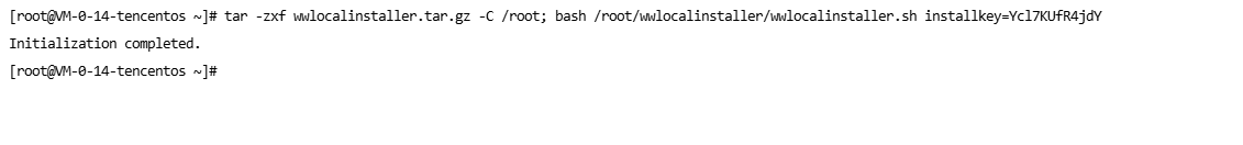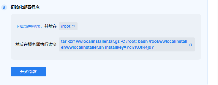 下载部署程序并且上传到服务器上。复制命令后,在服务器上执行,即可初始化部署程序。下载后获得部署程序文件,会获得一个wwlocalinstaller.tar.gz命名的文件