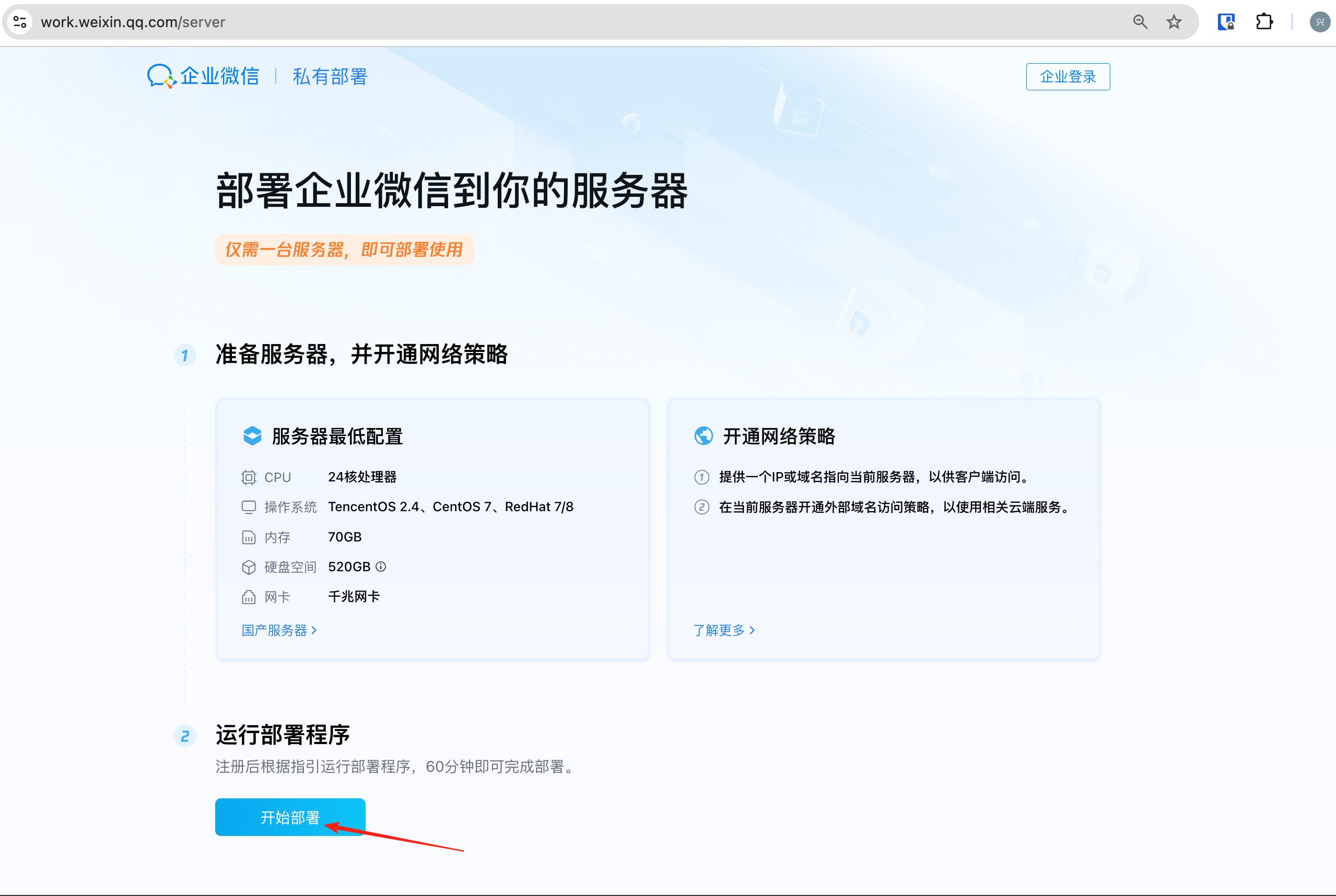 在进行企业微信私有化部署之前,需要准备一台满足最低配置要求的服务器。以下是服务器配置的详细要求: