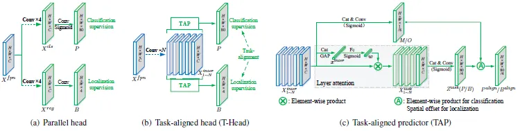 现代目标检测器大部分都会在正负样本分配策略上面做文章,典型的如YOLOX 的simOTA、TOOD的TaskAlignedAssigner和RTMDet 的DynamicSoftLabelAssigner ,这类 Assigner 大都是动态分配策略,而 YOLOv5采用的依然是静态分配策略。考虑到动态分配策略的优异性,YOLOv8算法中则直接引用了TOOD的TaskAlignedAssigner。