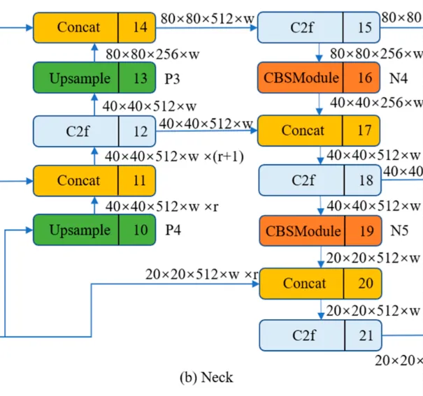 YOLOv8使用PA-FPN(路径聚合网络-特征金字塔网络)的思想,具体实施过程中将YOLOV5中的PA-FPN上采样阶段的卷积去除了,并且将其中的C3模块替换为了C2f模块。