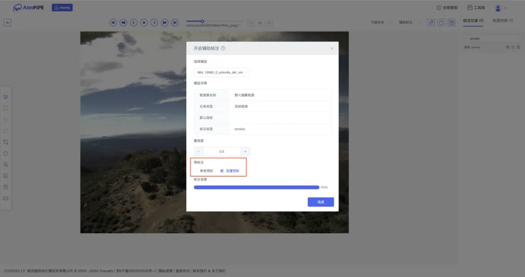 进入【辅助标注】页面,点击创建样本集,进入样本集详情页,创建好标签进行数据标注。可以选择几组数据进行人工标注,标注完成后发布为数据集启动微调训练,剩余样本集数据即可全部自动化完成。