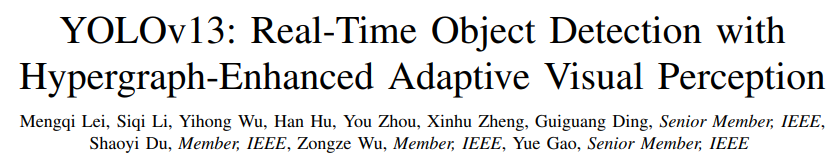 论文标题: YOLOv13: Real-Time Object Detection with Hypergraph-Enhanced Adaptive Visual Perception 论文链接: https://arxiv.org/abs/2506.17733