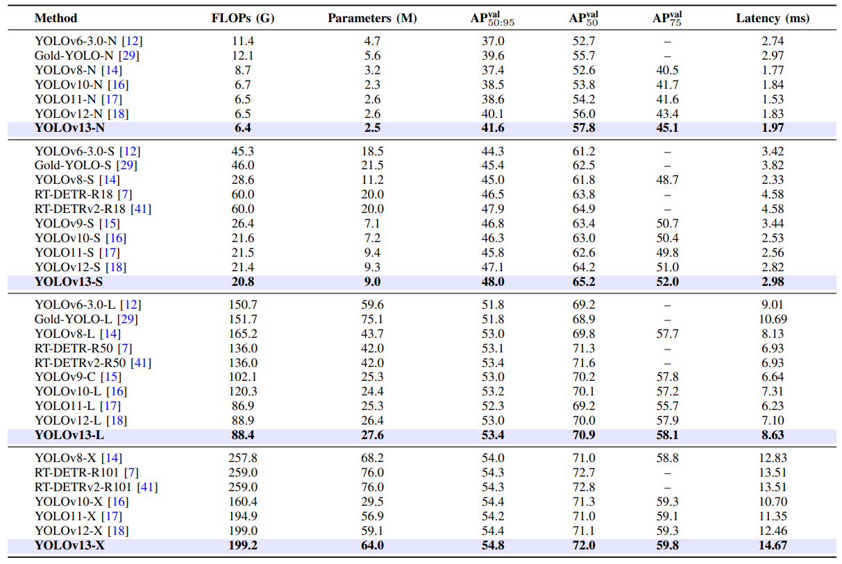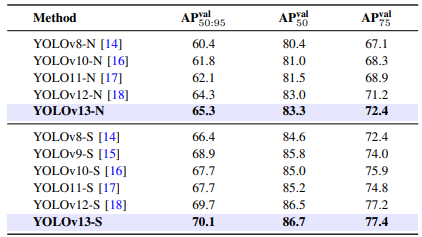 根据论文,YOLOv13 在 MS COCO 和 Pascal VOC 两大数据集上实现了全面领先: