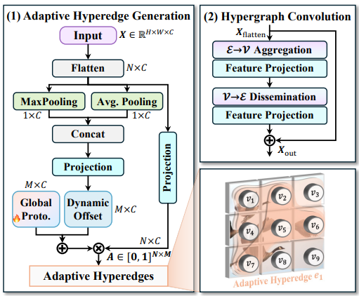 用超图机制(HyperACE),替代以往只能处理局部关联的卷积和自注意力,让模型能识别出多个物体之间复杂的潜在关系。