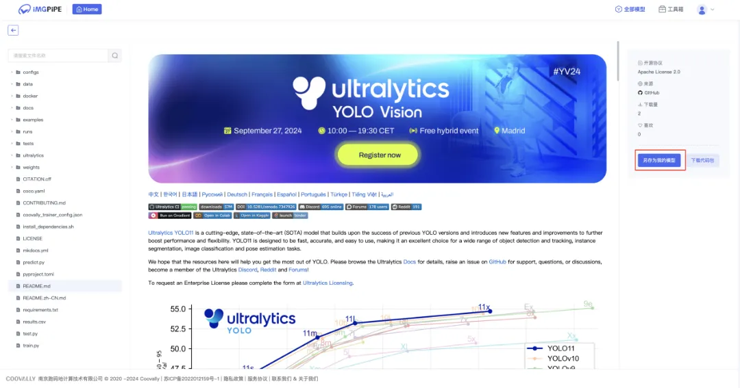 Coovally AI模型训练与应用平台整合了30+国内外开源社区1000+模型算法。