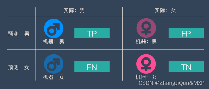 TP – True Positive:实际为男性,且判断为男性(正确)