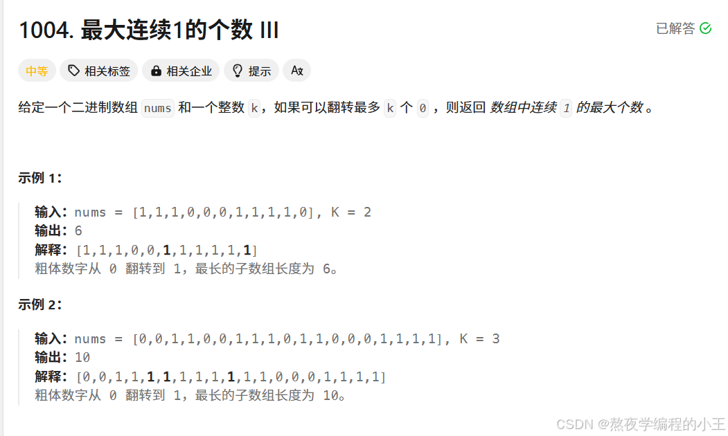 题目链接:1004. 最大连续1的个数 III - 力扣(LeetCode)