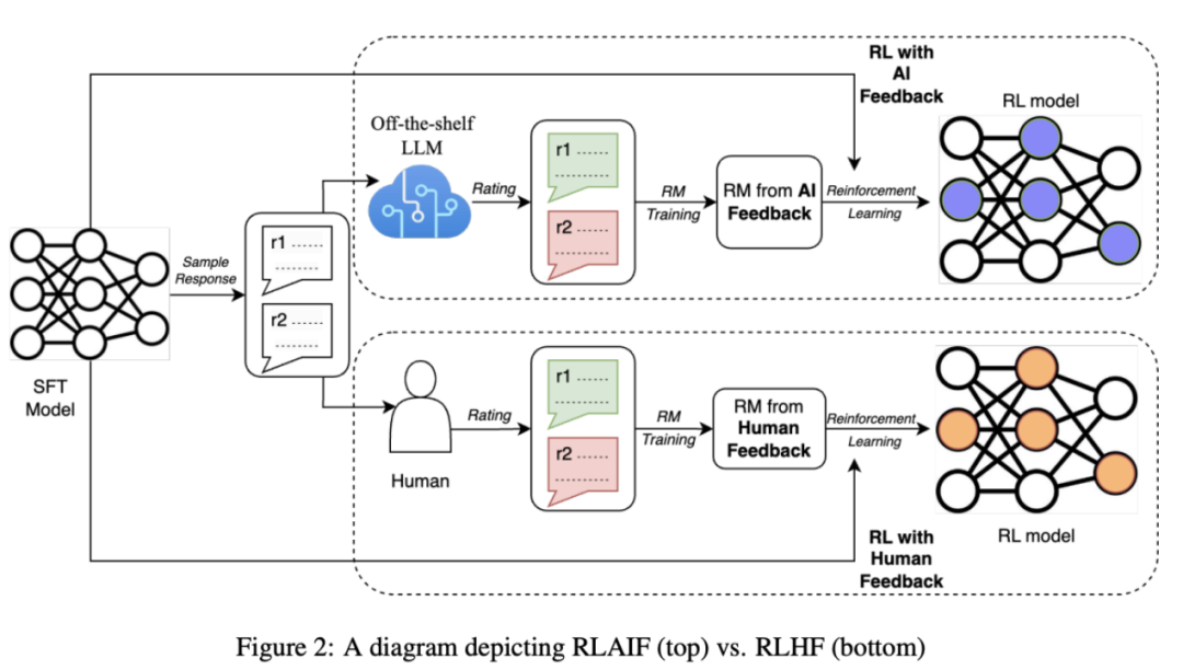 Lee, H., Phatale, S., Mansoor, H., Lu, K., Mesnard, T., Bishop, C., Carbune, V. and Rastogi, A. (2023).RLAIF: Scaling Reinforcement Learning from Human Feedback with AI Feedback. [online] arXiv.org. doi:https://doi.org/10.48550/arXiv.2309.00267.
