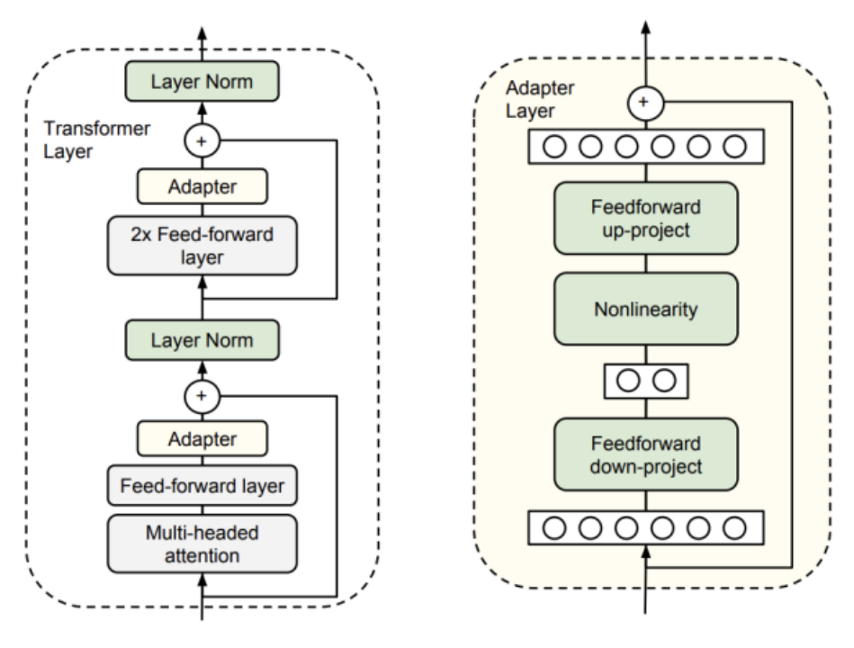 Houlsby, N., Giurgiu, A., Jastrzȩbski, S., Morrone, B., De Laroussilhe, Q., Gesmundo, A., Attariyan, M. and Gelly, S. (n.d.).Parameter-Efficient Transfer Learning for NLP. [online] Available at: http://proceedings.mlr.press/v97/houlsby19a/houlsby19a.pdf.