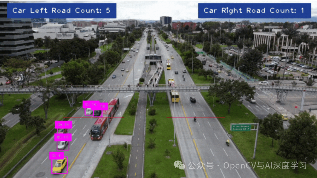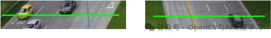 我们将在视频中定义两个区域:一个区域用于计数下行的汽车数量,另一个区域用于计数上行的汽车数量。