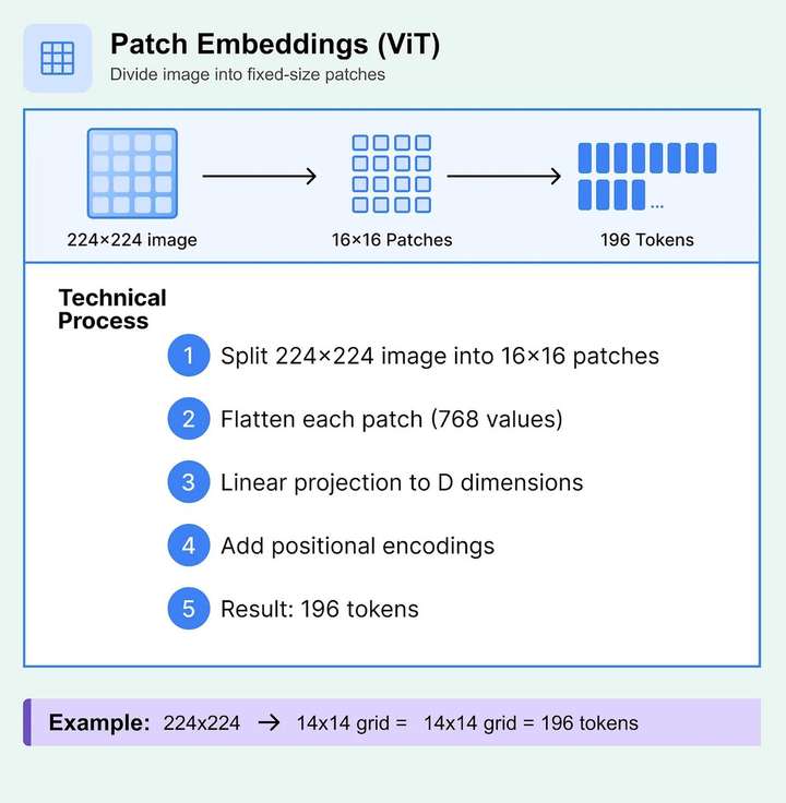 视觉编码器(Vision Encoder): 使用预训练视觉模型(如ViT或CLIP的视觉编码器)将图像转换为特征向量(Embeddings),捕获关键视觉信息。