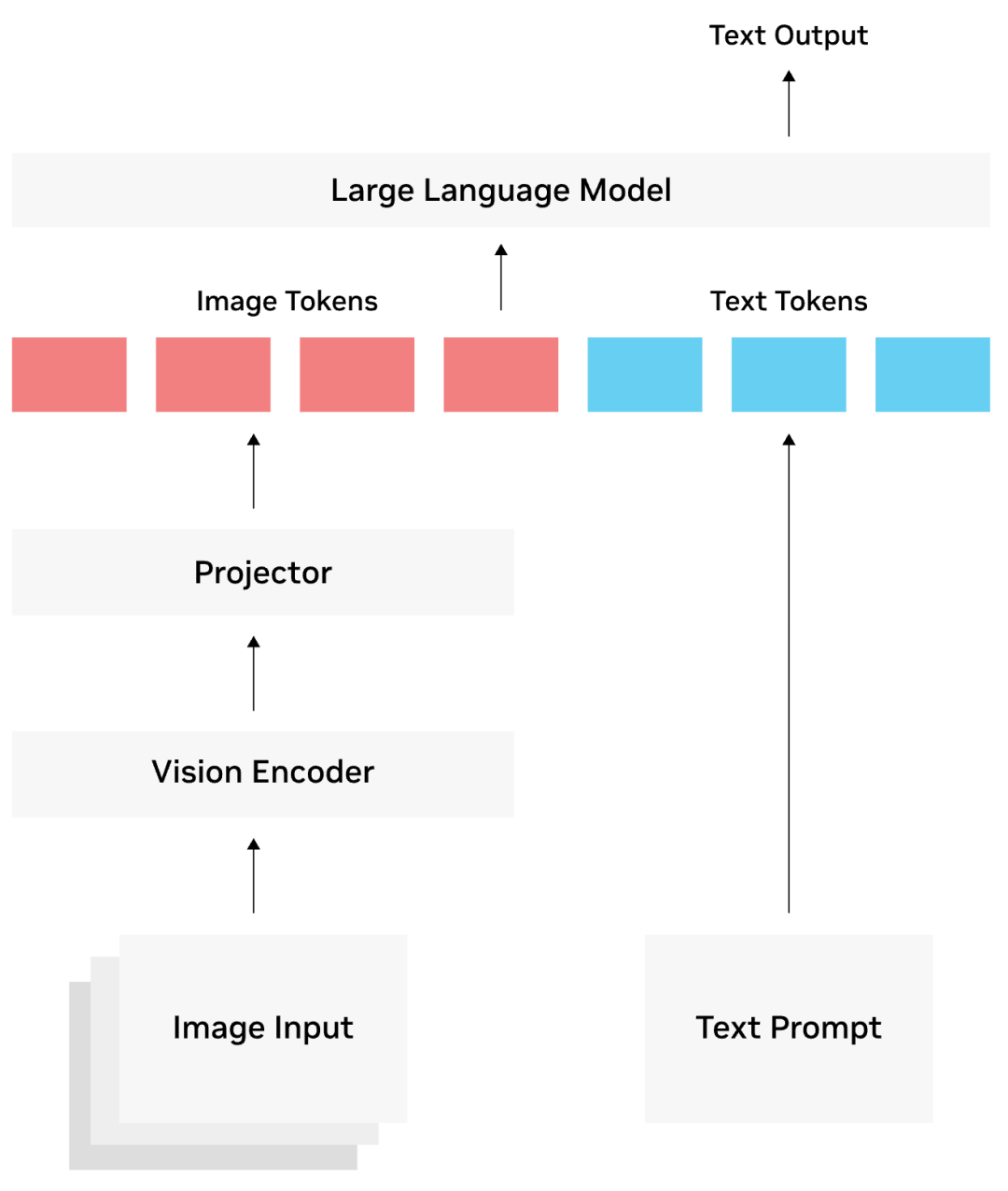 VLM的核心是将视觉和文本信息映射到同一语义空间,使语言模型能够“理解”图像内容。其结构通常包括三部分: