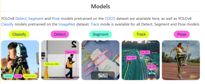YOLOv8目前支持目标检测、实例分割、图像分类、目标跟踪、姿态估计,也许还有更多惊喜在后面。