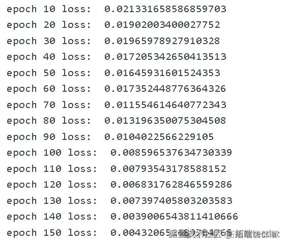 使用ADAM优化器和小批量梯度下降(batch_size = 128)训练贝叶斯LSTM,训练150个epoch。模型在数据集的前70%上进行训练,剩余30%用于测试。 AI提示词:定义模型训练所需的参数,包括特征数量、序列长度、输出长度、批量大小、训练轮数和学习率等,初始化贝叶斯LSTM模型、损失函数和优化器,进行训练循环,在每个epoch中对每个小批量数据进行前向传播、计算损失、反向传播和优化器更新,并打印训练过程中的损失值。