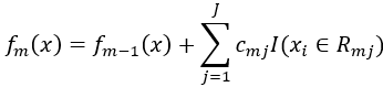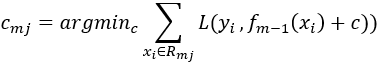 b.对rmi拟合一个回归树,得到第n棵树的叶节点区域Rmj,j=1,2,…,J