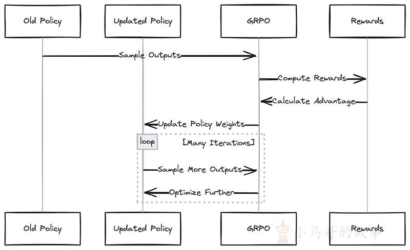 然后使用这些优势分数来更新旧策略,使其更有可能在未来产生高于平均水平的答案。这个更新的模型成为新的“旧策略”,这个过程重复进行,迭代地改进模型。