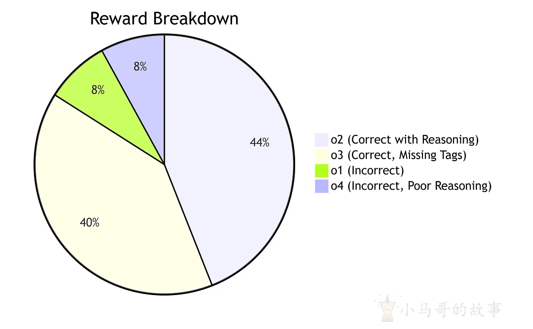 为了引导模型进行更好的推理,基于规则的奖励系统应运而生。每个输出都根据以下条件分配奖励: