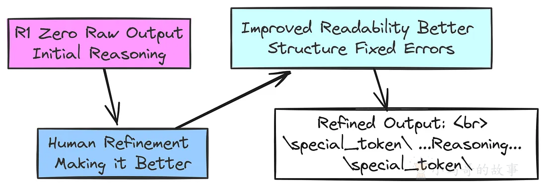 | special_token | 格式使所有内容统一且易于处理。获得此冷启动数据后,他们进行了监督微调 (SFT)。