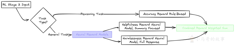 最终的奖励信号成为准确度、有用性和无害性分数的加权组合。